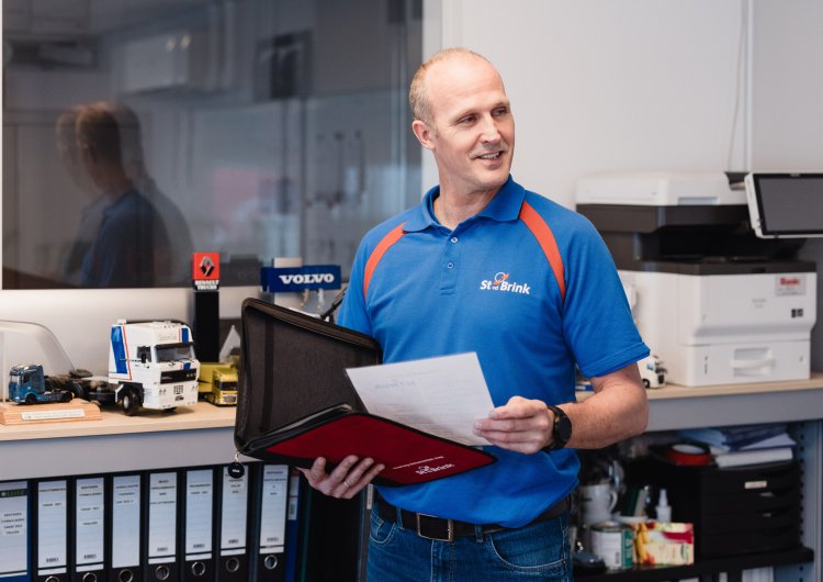 Richard zijn reis binnen St vd Brink nam een onverwachte wending toen er een functie vrijkwam op de afdeling Wagenparkbeheer en hij benaderd werd voor de functie van schadebehandelaar. “Hier moest ik wel even over nadenken vanwege de switch naar een kantoorbaan. Al snel zag ik dit voorstel als een enorme kans om mijn menselijke skills en probleemoplossende vaardigheden op een nieuwe manier toe te passen. Wanneer er een schade gereden wordt binnen St vd Brink kom ik in beeld. Als schadebehandelaar behandel ik alle schademeldingen van a tot z. Iedereen die te maken heeft met een schade, vult een digitaal schadeformulier in en meldt dit bij de schadeafdeling. Ik zorg dan voor de juiste en efficiënte afhandeling van de schade. Helaas hebben we ook wel te maken met grote ongevallen. In dat soort gevallen nemen wij de regie vanaf het eerste moment over en schakelen zelf met hulpdiensten, Rijkswaterstaat, bergers en juristen. Naast het behandelen van schades behoort het analyseren van schades en het sturen op schadepreventie ook tot mijn takenpakket.”